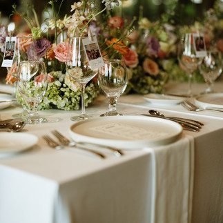 Stepping into the reception, flowers stretched gracefully along soft linen table runners, blending into the warm candlelight, as if the entire space was quietly listening to their story. No excessive details—just the harmonious combination of florals, natural wood, and light, creating a setting that felt both intimate and refined. And the bridal bouquet—wild yet soft, strong yet delicate—was like a symphony of contrasts, much like the bride herself on this special day.